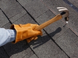 При полной замене плитки, дефектную удаляют шпателем, не забывая вытащить старые гвозди. Новую битумную черепицу смазывают клеем, подкладывают под расположенную выше и прибивают кровельными гвоздями. Чтобы было удобнее работать на крыше, пользуйтесь небольшой емкостью для клея с ручкой и держателем для кисти.