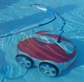 Примерно таким же образом работает и автоматический подводный пылесос. Им удобно почистить пластиковый или забетонированный пруд после зимы или в конце сезона. Весит подводный пылесос порядка 20 кг и самостоятельно перемещается по дну водоёма. Специальные щётки поднимают накопившуюся грязь со дна. Она вместе с водой фильтруется чрез сетку. Специальные насадки очищают водоросли с внутренних поверхностей водоёма. В зависимости от выбранного режима время работы подводного пылесоса составляет от 2 до 6 часов.