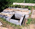 Как сделать своими руками такую выгребную яму? Кладку в полкирпича лучше проводить на ленточный фундамент высотой до 20 см, уложенный по периметру ямы. Между кирпичами необходимо оставлять зазоры в 5-6 см. Поверх кладки поперёк сливной ямы укладывается швеллер (№ 12), после чего бетонируется верх. Отверстие под люк готовится заранее в опалубке. Его проще соорудить своими руками квадратной формой (0,7х0,7 м). Для стояка потребуется сделать вентиляционное отверстие диаметром не более 5-ти см.