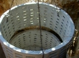 В качестве материала для строительства выгребной ямы можно использовать бетонные кольца или специальные пластиковые резервуары. Сделать бетонную выгребную яму конечно хорошо, но для этого потребуется заказывать кран. Однако можно пойти и другим путём – выложить стенки колодца кирпичной кладкой в шахматном порядке. Такой способ обеспечивает проницаемость для жидких фракций слива, что при глубоком залегании грунтовых вод будет способствовать долговечности выгребной ямы.