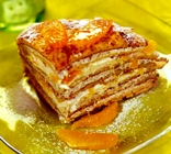 В завершение дадим оригинальный рецепт приготовления блинного торта с курагой – как нам на Масленицу без сладкого.