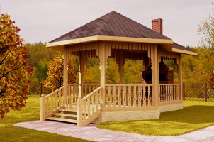 Оптимальный размер дачной беседки – 2 х 3 метра. Обычно её строят из дерева, пропитанного влагозащитным составом. В дело идут брус, обрезная доска, рейки и вагонка для внутренней отделки. На пол, на основание из листов ДСП, пропитанных олифой, можно постелить линолеум или половую доску. Крышу дачной беседки делают двускатной или четырёхскатной. В качестве кровли удобно использовать гибкую черепицу.