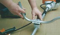 3. Вставляем рукоятку в гнездо и закрепляем её, сильно не затягивая. Окончательное положение отрегулируем после окончательной сборки бензокосы.