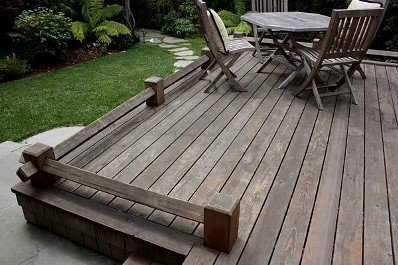 P.S. Продлить срок службы такого деревянного настила из палубной доски у себя на даче поможет пропитка , предотвращающая гниение древесины.