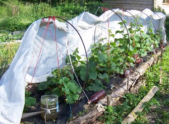 Мы уже упоминали, что огурцы любят рыхлые, богатые органикой почвы. Если вы осенью не вносили навоз или компост, внесите их под весеннюю перекопку. Грядку для высадки рассады размечают следующим образом: между рядами берут расстояние 1 – 1,2 метра, а между растениями – 30-40 сантиметров. Готовят лунки для посадки и проливают их тёплым раствором марганцовки. Ни в коем случае не следует заглублять рассаду – её стебли могут загнить. Для того чтобы высаженную на открытом грунте рассаду уберечь от возвратных заморозков, установите проволочные дуги и накиньте на них укрывной материал.