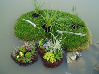 Такая плавающая клумба не только добавит свежий акцент в садовый дизайн, но и окажет положительное влияние на экологию водоёма. Вода в нём будет не так сильно нагреваться на солнце и в результате меньше цвести. Корни растений, высаженных на плавающем островке, способны очищать воду, поскольку забирают из неё излишки питательных веществ.