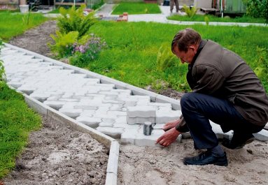 Технология укладки тротуарной плитки предусматривает обязательное ограждение поверхности дорожки или площадки бордюрами. Это необходимо для обозначения их границ с целью не допустить смещения крайних плиток и сохранения единства композиции. Бордюрная плитка устанавливается таким образом, чтобы её верх совпадал с верхом тротуарной плитки. Если поверхность будет делаться с узором, то лучше выложить рядом в качестве образца примерно один её квадратный метр.