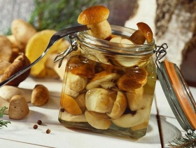 Белые грибы, предварительно очищенные и вымытые, варим в течение получаса и откидываем на дуршлаг. Для приготовления маринада кипятим воду со специями, солью и уксусом. Опускаем грибы в кипящий маринад на 10 минут. На дно приготовленных банок кладём порезанную кольцами луковицу, сверху грибы и заливаем маринадом. Для пастеризации полулитровых банок потребуется 25 минут, литровых – не менее 30 минут. После того как банки закатаны крышками, их надо перевернуть вверх дном и укутать до полного остывания старым одеялом.