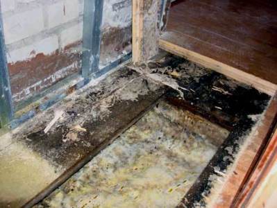 Василий Петрович, так назовём упомянутого специалиста, при осмотре дома обнаружил по углам его деревянного пола рыхлые пятна грязно-белого цвета. Это оказался белый домовой гриб. Чаще всего он появляется на деревянных поверхностях в увлажнённых и слабо проветриваемых местах. Этот вредоносный гриб ещё называют белым тутовиком. Если срочно не принять соответствующие меры по борьбе с ним, то эта зараза способна за полгода разрушить деревянное строение.