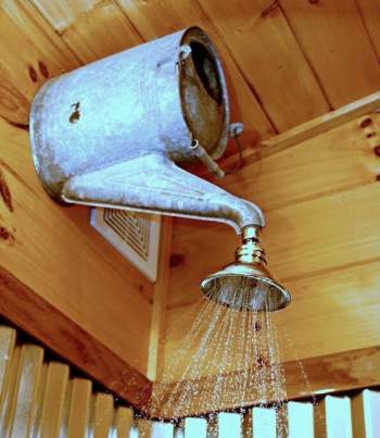 Конечно, при желании можно из тех же подручных материалов сделать стационарный летний душ. Каркас его должен быть выполнен из деревянных брусьев, укрепленных металлическим уголком. Его обшивают вагонкой и навешивают дверь. При необходимости кабина утепляется.