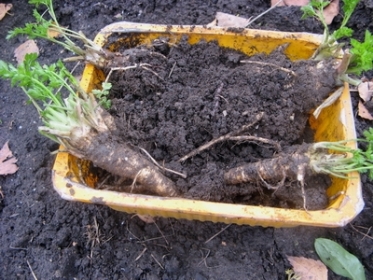 Чтобы зимой в доме всегда была свежая зелень, некоторые дачники осенью привозят выкопанные корнеплоды в городскую квартиру и высаживают их в ящиках или горшках на подоконнике. Подходят для этого петрушка, сельдерей, свекла, а также многолетние луки и щавель. Выгонка корнеплодов на зелень – занятие абсолютно незатруднительное. Вот как это делает Ольга Силаева из подмосковного города Долгопрудный.