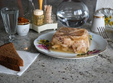 Теперь насколько слов о студне. Так чем же это блюдо отличается от холодца? По классическому рецепту, который соблюдала моя бабушка, для студня готовят бульон исключительно из говядины. Чтобы он застыл, используют головизну и хвосты – не столь популярные продукты в нашем рационе. Их предварительно хорошенько чистят и выдерживают в подсоленной воде. Варить бульон для студня требуется в два раза дольше, чем для холодца. К тому же он получается не таким светлым. Чтобы добиться прозрачности бульон осветляют соком лимона или яичным белком.
