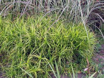 Длинное название этого злака оправдывается его ростом. При благоприятных условиях высота его тонких стеблей может достигнуть полутора метров. Цветёт мискантус мелкими малиново-красными цветками с августа до ноября. В конце осени они становятся коричневыми. Любит солнце и обильный полив.