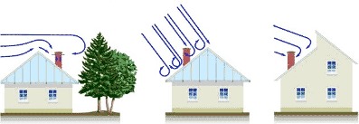 Даже высокие деревья, стоящие возле дома могут стать причиной обратной тяги.
