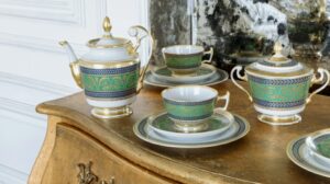 - Уникальные формы. От классических чашек до сложных сервизов с лепниной и фигурными ручками — всё продумано до мелочей.