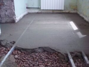 — Подготовка основания: убедитесь, что основание чистое, сухое и лишено мусора. Неровности нужно устранить еще до заливки бетона.