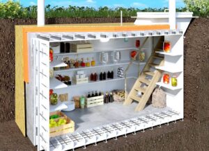 Что касается бетонного погреба, то стоит сказать о том, что это самое распространенное решение. Но при этом он имеет определенный ряд минусов. Во — первых, они обладают плохой герметичностью. Что влечет за собой поступление грунтовых вод, так как погреб находится внизу. Тоже самое может касаться и подвалов. В итоге может появляться конденсат, а в связи с этим и плесень. Для того, чтобы этого избежать необходимо делать гидроизоляцию. А также утеплять. Но помимо этого, потребуется еще и приточно — вытяжная вентиляция.