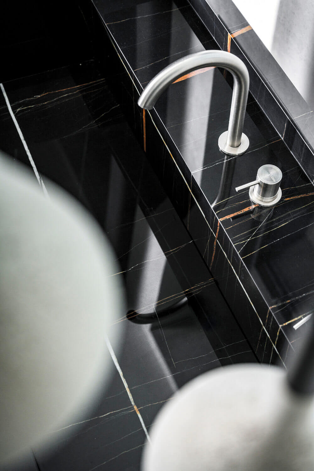 Коллекцию Marmi Maximum Sahara Noir представлена итальянским производителем Fiandre. Поверхность плиток сатинированная (небольшой блеск, приятная на ощупь). Формат 150×300 см, толщина 6 мм.