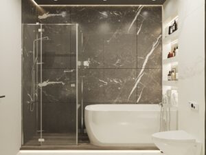 - Разграничивать внутреннее пространства.Возможность деления на зоны позволяет использовать пространство максимально, причем при принятии душа на стенах не останется следов брызг.