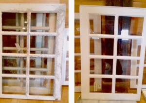 - Снимите окна. Для удобства лучше снять окна с рам и работать с ними на ровной поверхности.